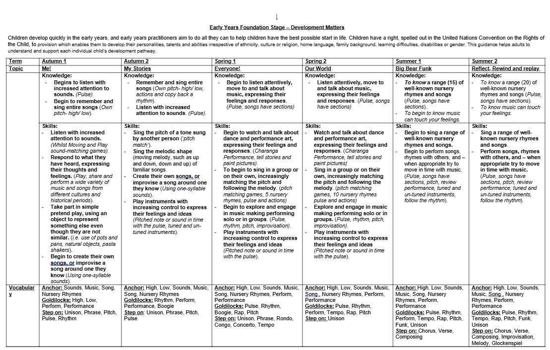 Please look at the progression of knowledge and skills chart to show the core knowledge, skills and vocabulary that we will be teaching in Reception at Court Lane Infant School.